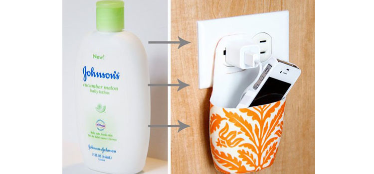 - Estació de recàrrega de mòbils. Únicament necessites un envàs de sabó o crema de mans d’uns 500 ml. Retallar la part frontal fins a la meitat, eliminar la part superior i en la de darrere adaptar el tall a la forma de l’endoll. Ho penges sobre la presa de corrent i pots deixar descansant el mòbil dins de l’envàs sense haver de deixar-ho a terra. A més, pots decorar el plàstic amb pintures, dibuixos o el que prefereixis.