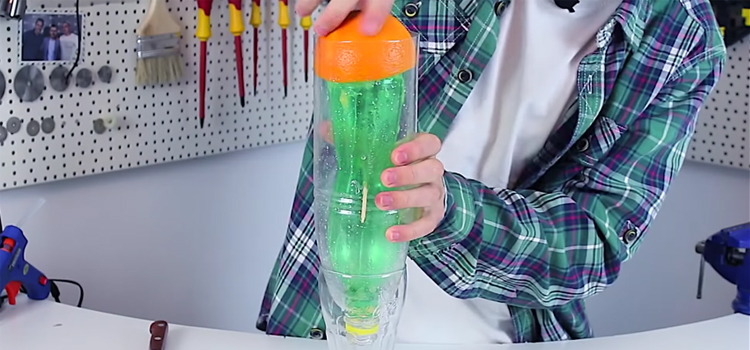 - Espremedor casolà amb ampolles de plàstic. Només necessitaràs dues ampolles, una de dos litres i l’altra d’un. Retalla amb l’ajuda d’unes tisores, la part inferior de la primera. Després introdueix la d’un litre sense tap dins de l’altra. Els dos envasos han de quedar de cap per avall i sense tap. Després col·loca-les en un got i solament hauràs d’esprémer el cítric que prefereixis sobre la part inferior de l’ampolla d’un litre i el suc arribarà fins al got.