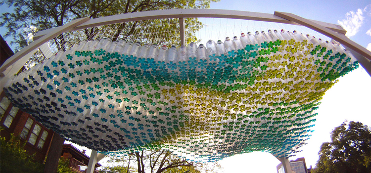 - Ampolles per crear sostres multicolors. És una idea del dissenyador Garth Britzman, farceix les ampolles amb líquids de colors i les suspèn sobre una estructura a l’aire per crear un bonic sostre multicolor. Aquesta idea és d’un nivell PRO, per si t’atreveixes a fer-ho a casa, et deixem el pas a pas.